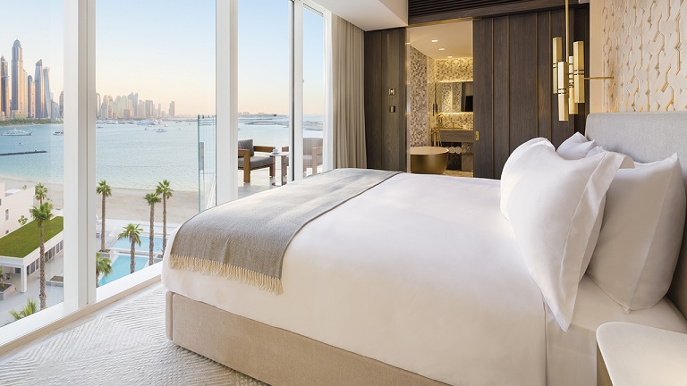 A 16 emeletes szálloda 477 szobája és pár lakosztálya egyszerű, mégis ízlésesen elegáns berendezésű, lélegzetelállító kilátással az Arab-öbölre.