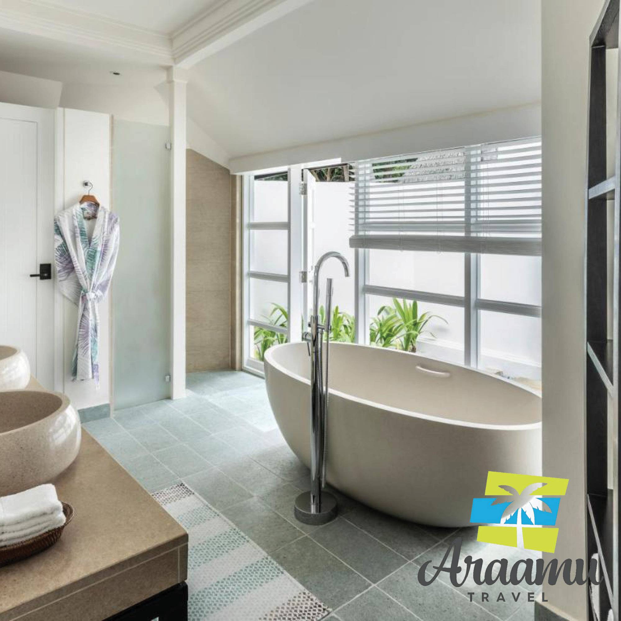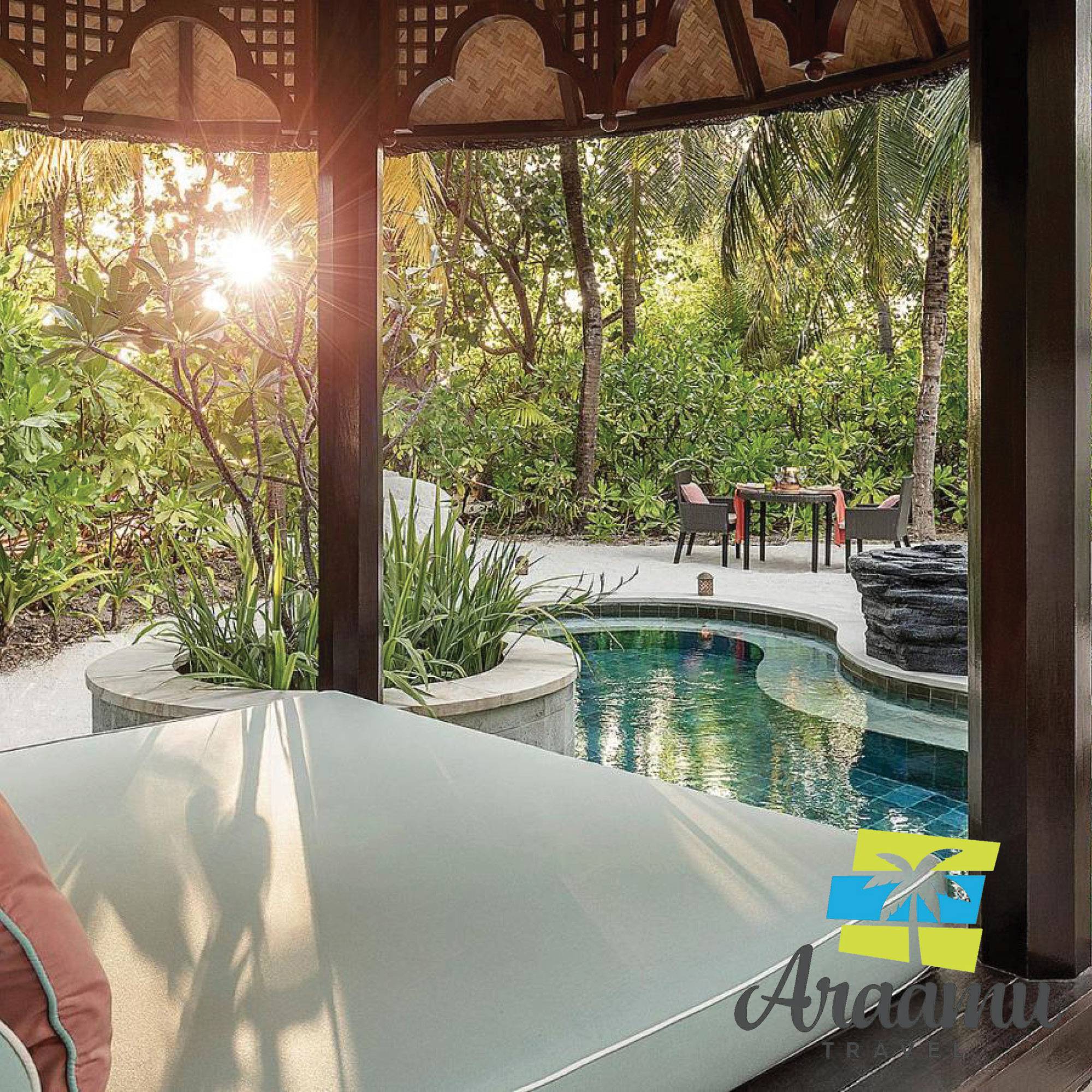 Beach Pavilion medencével (25) kb. 107 nm (kb. 45 nm lakrész): különálló bungalók csupán néhány méterre a tengertől, merülő medencével és árnyékos lugassal (helyi neve: bale), terasz nyugágyakkal és ernyőkkel, valamint szép kilátással a trópusi növényzetre.