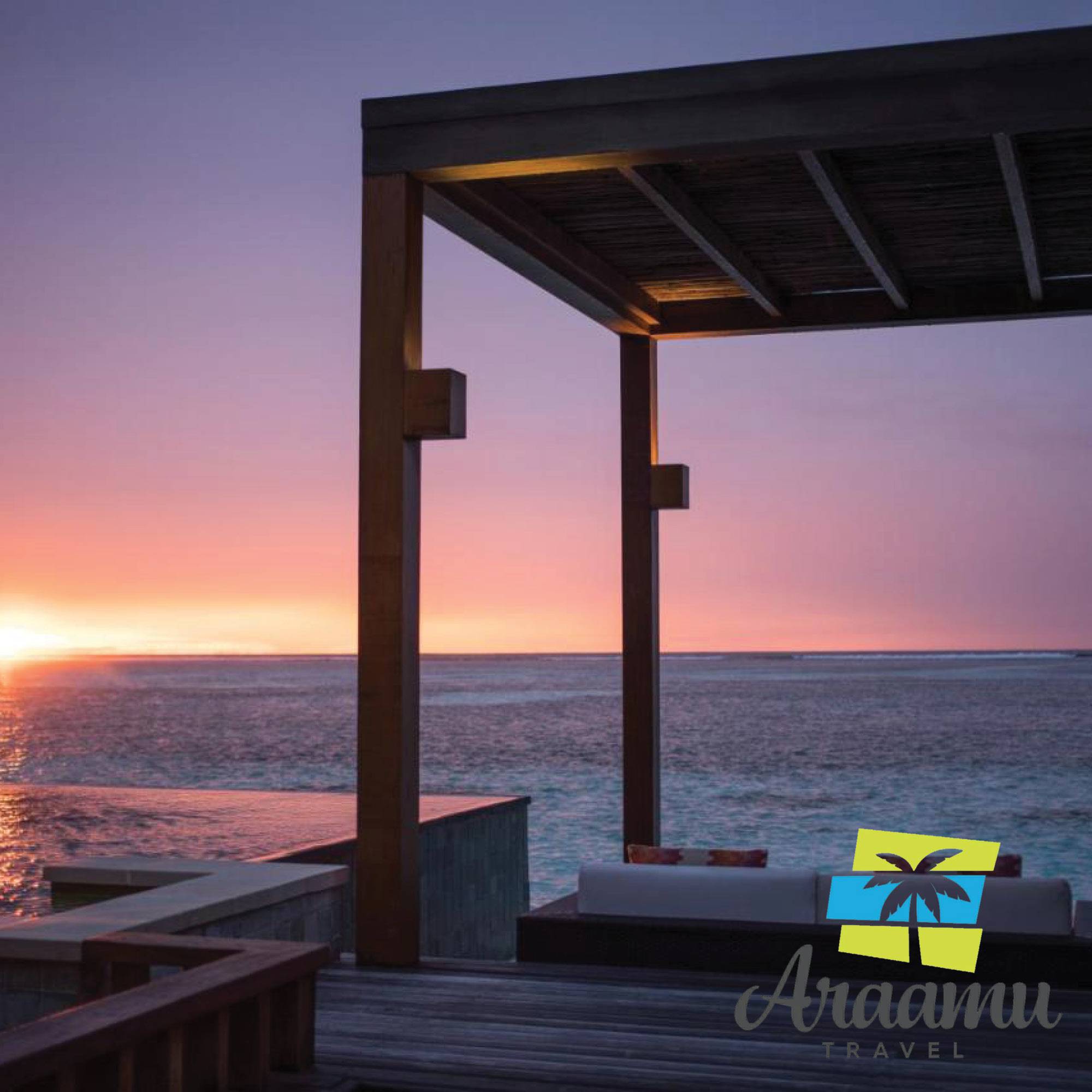 Sunrise/Sunset Water Bungalow (32) kb. 10 nm (kb. 61 nm lakrész). A lagúnában cölöpökre épült, közvetlen lejárattal a tengerhez (létrán). Választható, hogy napfelkelte (OUXB) vagy naplemente (OUMB) irányába néző.