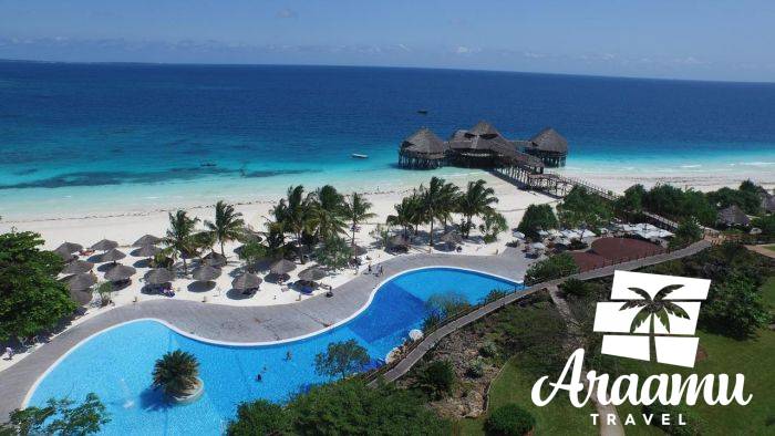 Közvetlenül a sziget északi végének strandján, Nungwi közelében, kb. 45 km-re a város központjától. Úticél repülőtér: Zanzibár, kb. 50 km.